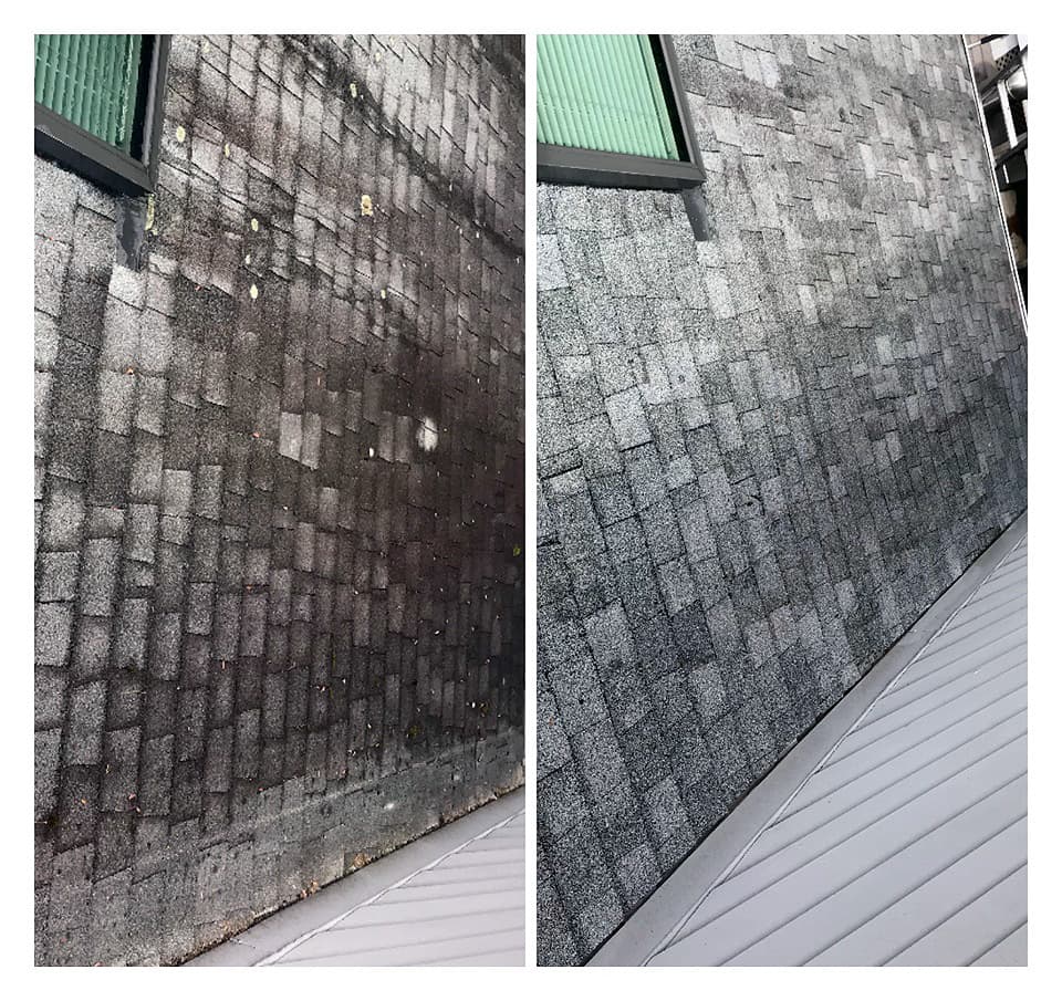 Moss was growing on one part of my roof. I wanted to take care of it before it spread and got worse. HiRoofCleaners came out and sprayed their treatment system to stop further spread and to get rid of the current moss. It’s been four months and now all of the moss is gone and my roof looks like new.